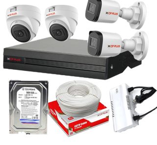 CP Plus CCTV Camera 2 Bulet 2Dome 4 Chanel DVR Power Supply Combo
